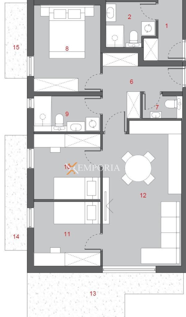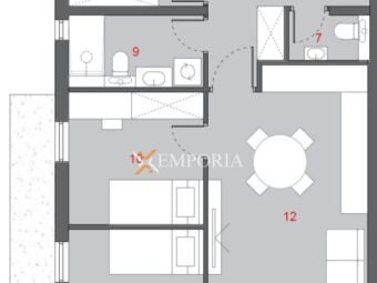 Zum Verkauf steht eine neue Wohnung in einem Neubau in Zadar, in Crvene kuće. Es handelt sich um eine Wohnung im 1. Stock eines modernen Wohngebäudes, das voraussichtlich bis Ende 2026 bezugsfertig sein wird.