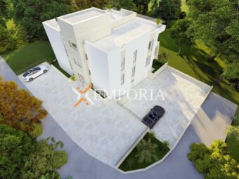 Das Gebäude wird aus wärmedämmendem Ziegelmauerwerk in Kombination mit Betonwänden errichtet. Die Fassade ist mit 10 cm Styropor isoliert. Die Fenster sind aus Aluminium mit Doppelverglasung, elektrischen Rollläden und Insektenschutzgittern. Die Böden werden gefliest, mit der Möglichkeit, Parkett zu wählen. Die Eingangstür ist einbruch- und feuerhemmend.