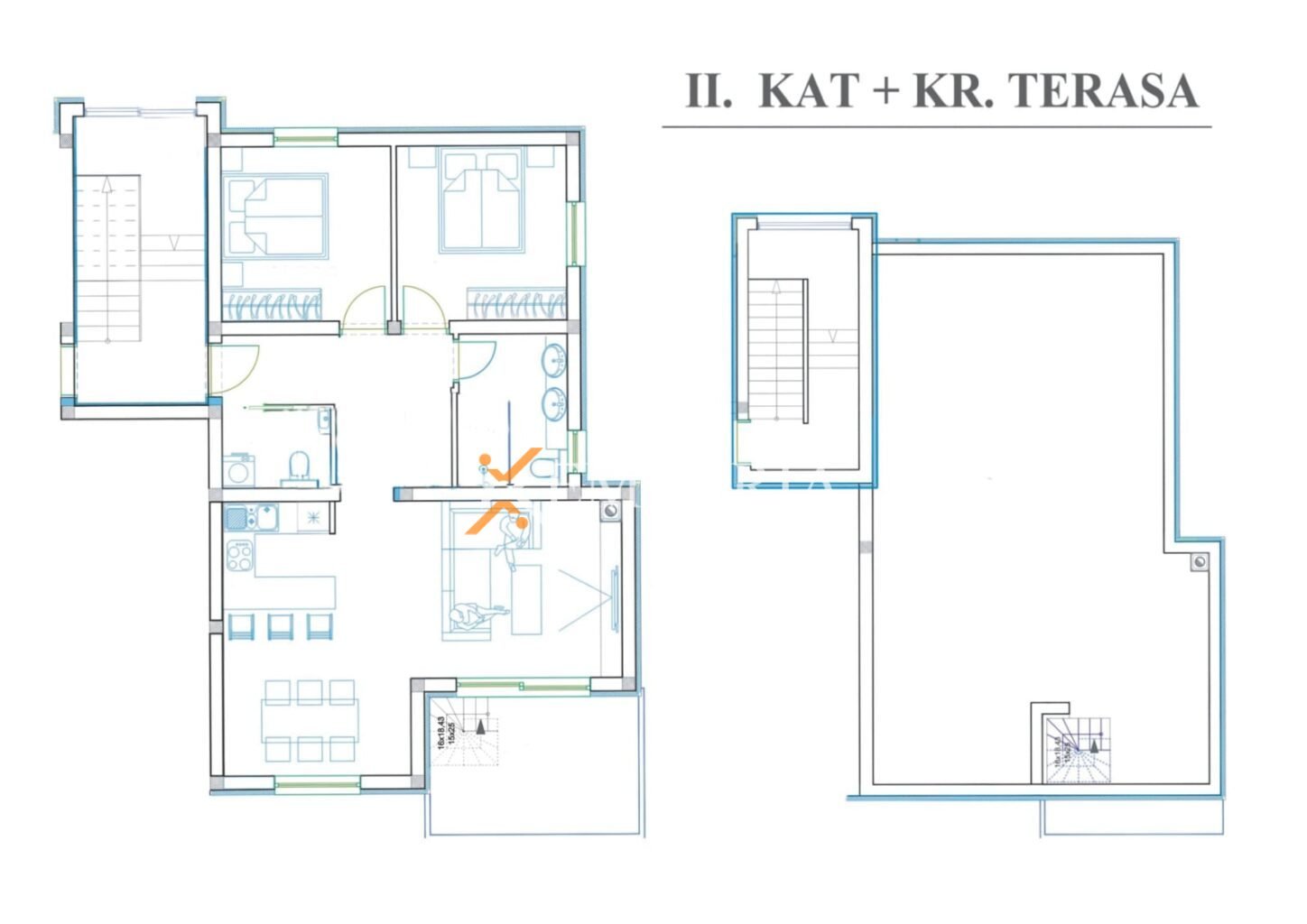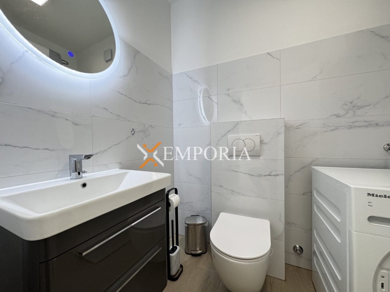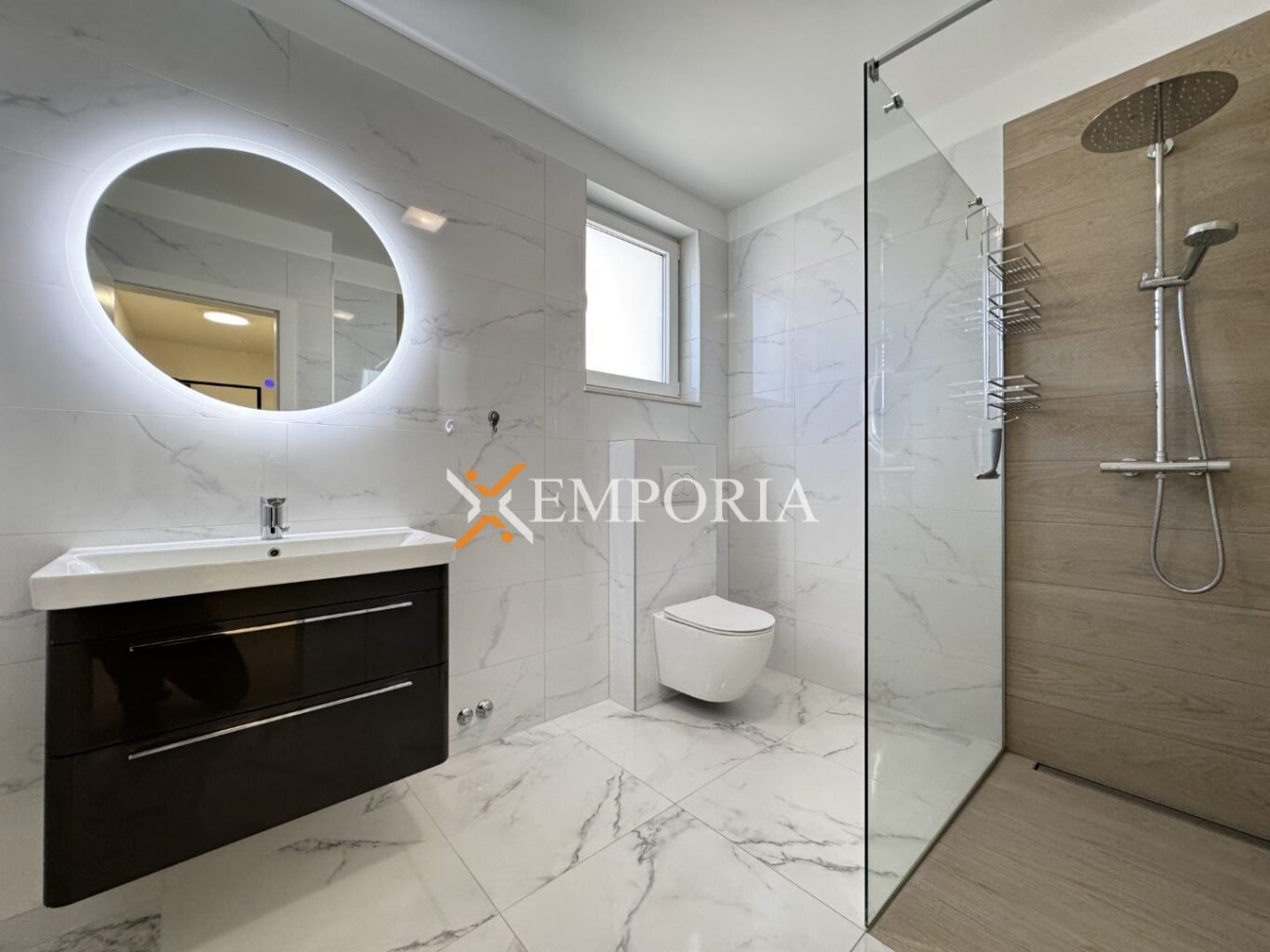 Zum Verkauf steht ein luxuriöser, vollständig möblierter Penthouse in einem Neubau im beliebten Stadtteil Borik in Zadar. Die Wohnung liegt nur 490 m vom Meer und 2,7 km vom Stadtzentrum entfernt. Die gesamte Nettofläche inklusive Nebenflächen beträgt 100,63 m². Besonders hervorzuheben ist die großzügige Dachterrasse mit 78,80 m², die einen hervorragenden Meerblick sowie einen vorbereiteten Anschluss für einen Whirlpool bietet – ideal zum Entspannen und Genießen des mediterranen Lebensstils.