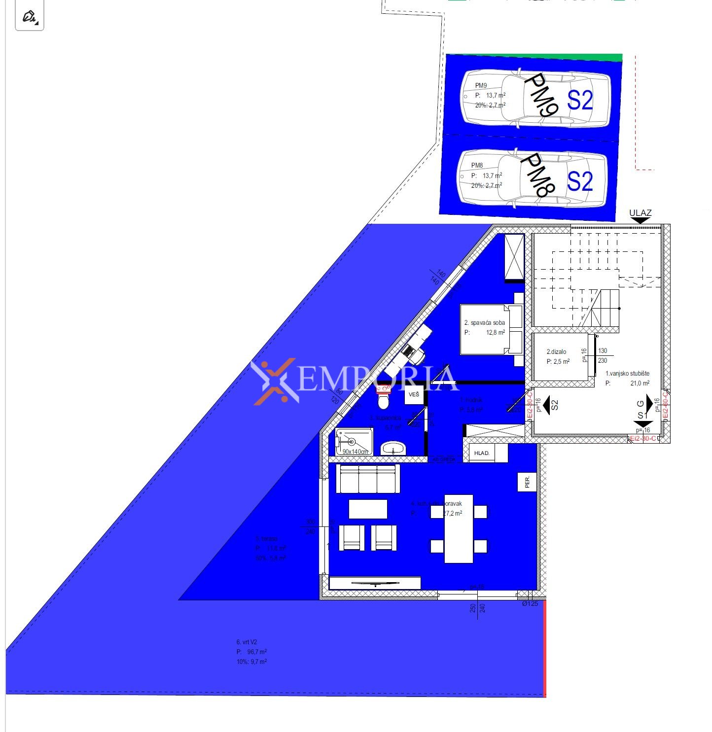 Zum Verkauf steht eine moderne Erdgeschosswohnung in einem Neubau im ruhigen Stadtteil Crvene Kuće in Zadar. Sie befindet sich nur 1,26 km vom Meer und 2,8 km vom Stadtzentrum entfernt. Diese Immobilie bietet eine perfekte Kombination aus Komfort, Funktionalität und hochwertiger Bauweise – ideal zum Wohnen oder als Investition.