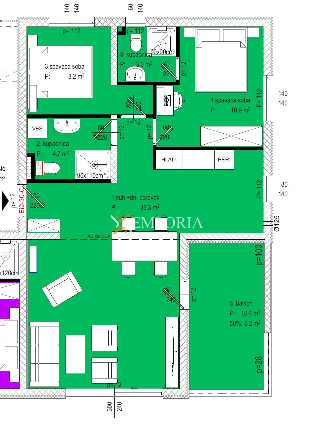 Zum Verkauf steht eine moderne Wohnung im ersten Stock eines Neubaus im ruhigen Stadtteil Crvene Kuće in Zadar. Sie befindet sich nur 1,26 km vom Meer und 2,8 km vom Stadtzentrum entfernt. Diese hochwertig gebaute Immobilie bietet die perfekte Kombination aus Komfort, Funktionalität und modernem Design – ideal zum Wohnen oder als Investition.