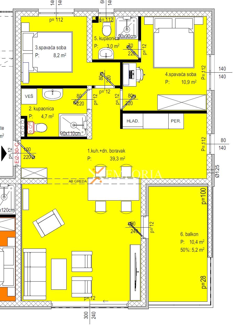 Zum Verkauf steht ein modernes Penthouse im zweiten Stock eines Neubaus im ruhigen Stadtteil Crvene Kuće in Zadar. Das Gebäude befindet sich nur 1,26 km vom Meer und 2,8 km vom Stadtzentrum entfernt. Diese Immobilie bietet eine perfekte Kombination aus Luxus, Funktionalität und hochwertiger Bauweise – ideal für modernes Wohnen.