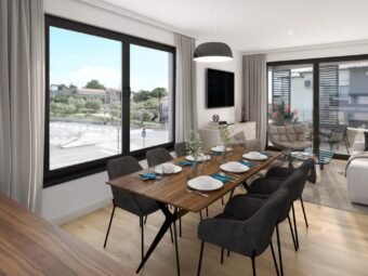 Zum Verkauf steht eine moderne Wohnung in einem Neubau mit Aufzug, gelegen in einer ruhigen Gegend von Zadar – Belafuža, nur 1,2 km vom Meer und 1,9 km vom Stadtzentrum entfernt.