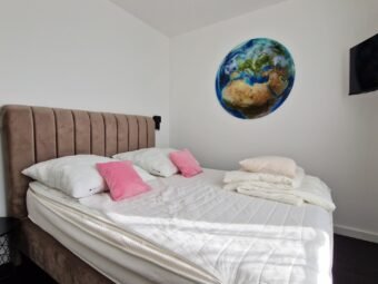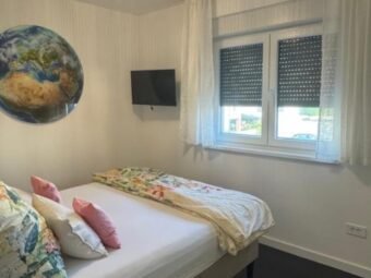 In allen Räumen außer den Schlafzimmern ist elektrische Fußbodenheizung installiert, und es gibt drei Klimaanlagen – eine im Wohnzimmer und je eine in den Schlafzimmern.