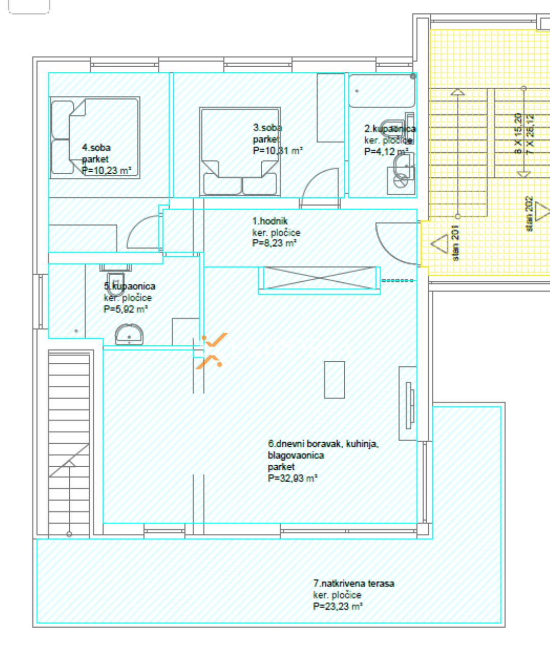 Dieses Penthouse ist eine sehr attraktive Immobilie im Stadtteil Borik in Zadar und ideal für alle, die eine hochwertige Wohnung mit großem Außenbereich und Meerblick suchen.
