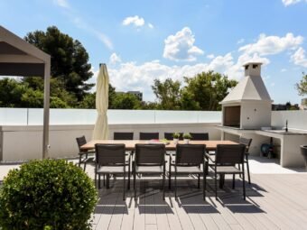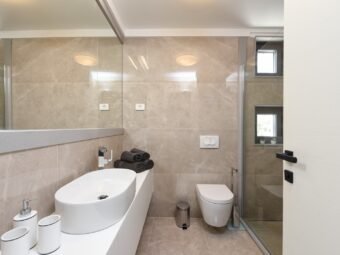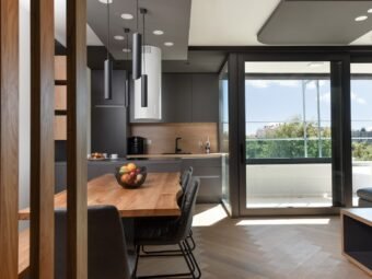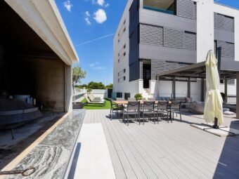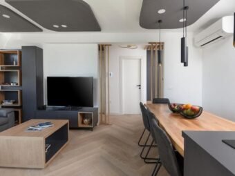 Die Wohnung wird komplett möbliert verkauft. Sie verfügt über eine elektrische Fußbodenheizung in allen Räumen außer den Schlafzimmern sowie über eine Klimaanlage im Wohnzimmer. Das Gebäude wurde aus Betonwänden errichtet, und die Aluminiumfenster mit dreifacher Verglasung, Insektenschutzgittern und Außenjalousien bieten eine sehr gute Energieeffizienz. Die Fassade ist mit 8 cm Wärmedämmung ausgestattet.