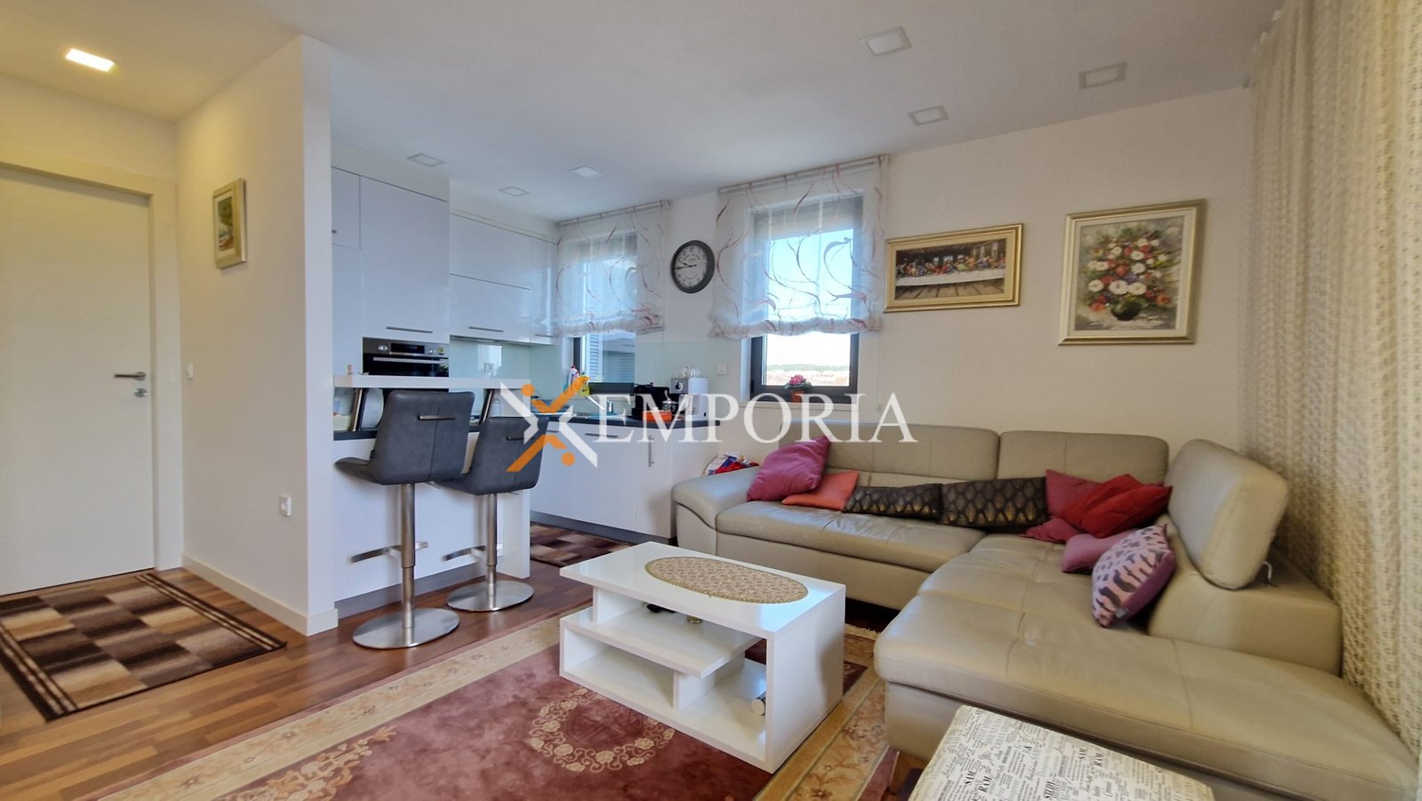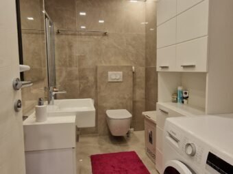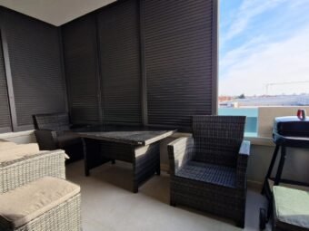 Zum Verkauf steht eine möblierte Wohnung in einem Neubau in attraktiver Lage im Stadtteil Borik, mit teilweisem Meerblick. Die Wohnung befindet sich im dritten Stock eines modernen Gebäudes mit Aufzug, der einen direkten Zugang aus der Garage ermöglicht. Das Meer ist 360 m entfernt, während das Stadtzentrum 2 km entfernt liegt, was eine ruhige Wohnlage bei gleichzeitig guter Erreichbarkeit aller Einrichtungen bietet.