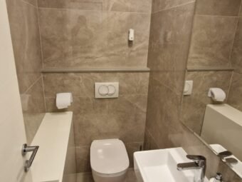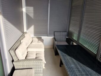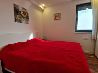Die Wohnung ist vollständig möbliert und sofort bezugsbereit. Eine elektrische Fußbodenheizung ist im Wohnbereich, in der Küche und im Essbereich sowie im Badezimmer und WC installiert. Klimageräte befinden sich im Wohnbereich und in zwei Schlafzimmern. Das Gebäude ist mit Stahlbetonwänden errichtet, die Fassade ist mit 10 cm Styropor gedämmt. Eingebaut sind PVC-Fenster mit Dreifachverglasung, elektrischen Rollläden und Insektenschutzgittern. Die Böden sind mit Fliesen und Parkett ausgestattet, die Eingangstür ist einbruchhemmend und feuerfest, und das Dach ist neu, flach und aus Stahlbeton.