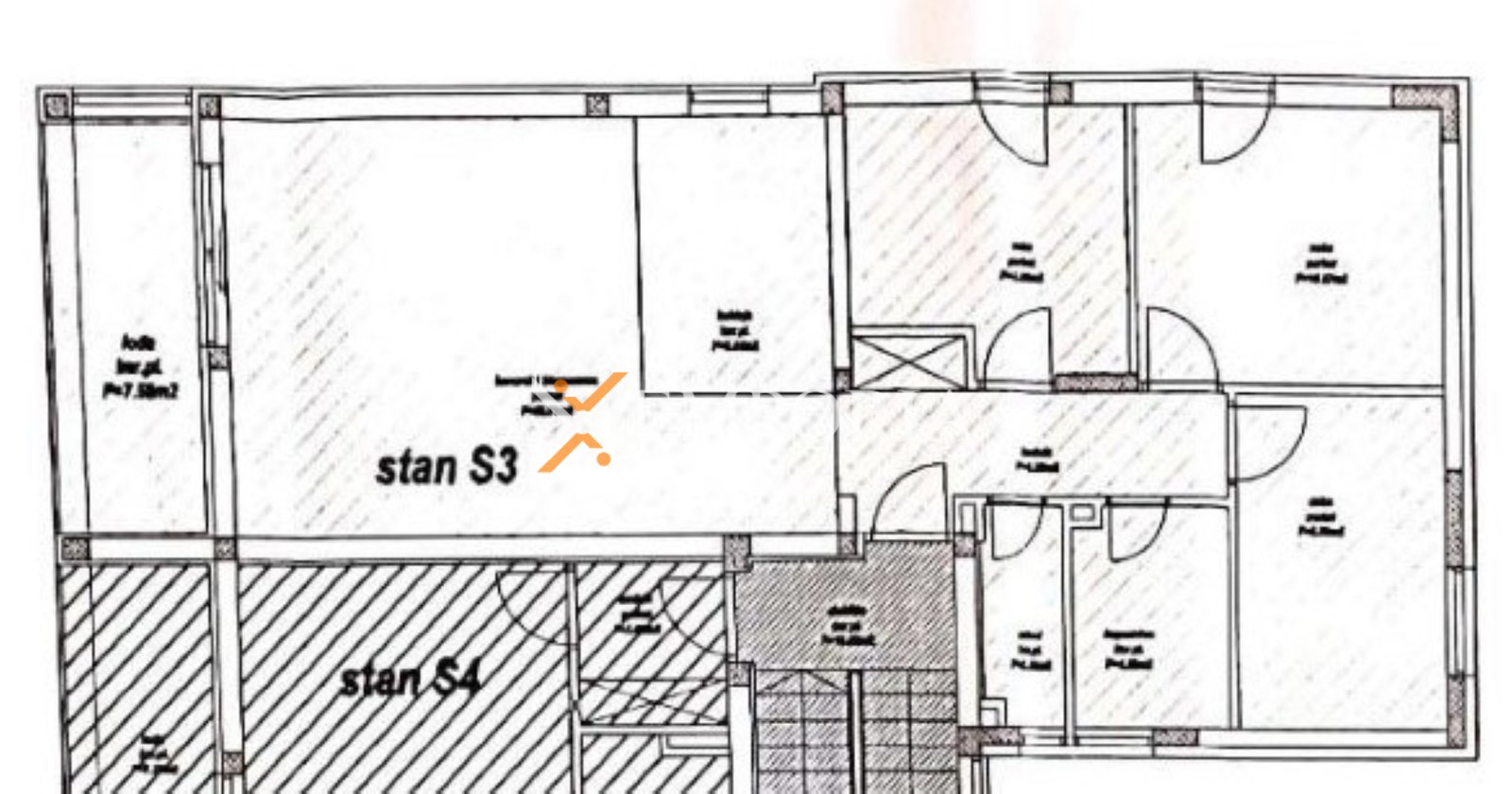 Die Raumaufteilung umfasst einen Flur, ein Wohnzimmer mit Essbereich, eine Küche, drei Schlafzimmer, ein Badezimmer, ein separates WC sowie eine Loggia. Die Netto-Nutzfläche der Wohnung beträgt 80,84 m2. Zusätzlich gehören ein Abstellraum von ca. 2 m2 sowie zwei Außenparkplätze zur Immobilie, was in dieser Lage einen großen Vorteil darstellt.
