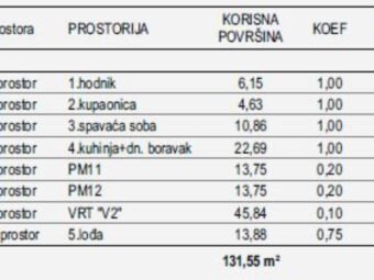 Das Gebäude wurde aus Betonwänden errichtet, während die Fassade mit 10 cm Styropor gedämmt ist und somit eine verbesserte Wärmedämmung bietet. Die Fenster sind aus PVC mit Dreifachverglasung, elektrischen Rollläden und Insektenschutzgittern ausgestattet.