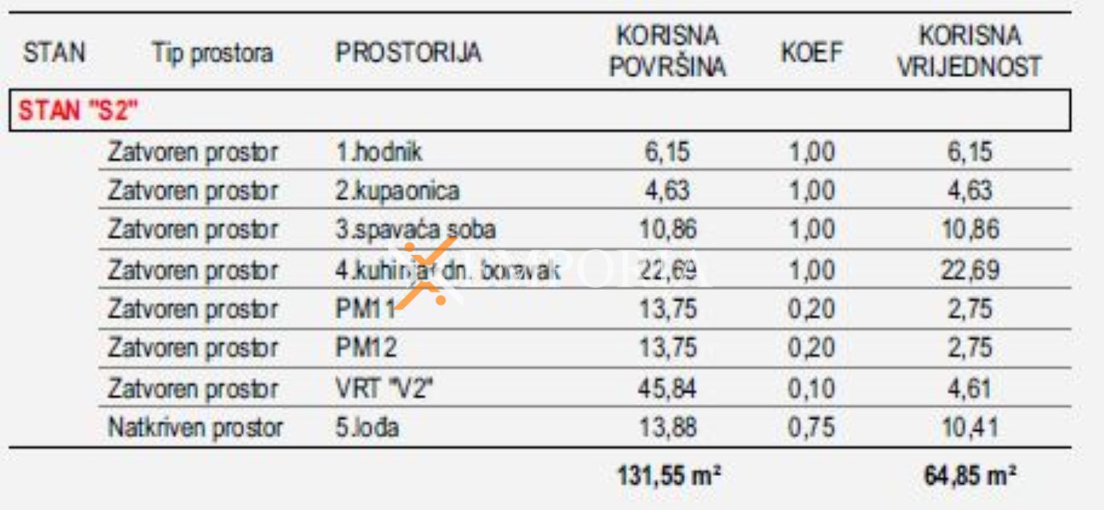 Die gesamte Nettofläche inklusive Nebenflächen beträgt 64,85 m2. Zur Immobilie gehören außerdem zwei Parkplätze, was in dieser Lage einen großen Vorteil darstellt.