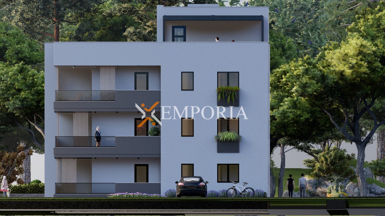 Zum Verkauf steht eine moderne Neubauwohnung in Zadar, im Stadtteil Vidikovac, gelegen im 1. Stock eines Wohngebäudes mit Aufzug. Die Immobilie bietet einen teilweisen Meerblick und befindet sich 1,5 km vom Meer sowie 2,5 km vom Stadtzentrum entfernt, wodurch ruhiges Wohnen mit guter Anbindung gewährleistet ist.