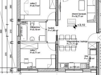 Zum Verkauf steht eine moderne Wohnung im Neubau im Stadtteil Borik (Diklovac) in Zadar, nur 500 m vom Meer und etwa 3 km vom Stadtzentrum entfernt. Die Wohnung befindet sich im ersten Stock eines hochwertigen Gebäudes aus dem Jahr 2022 und bietet einen teilweisen Meerblick, was diese Immobilie sowohl zum Wohnen als auch zur touristischen Vermietung besonders attraktiv macht. Die gesamte Nettonutzfläche inklusive Nebenflächen beträgt 76,87 m2.
